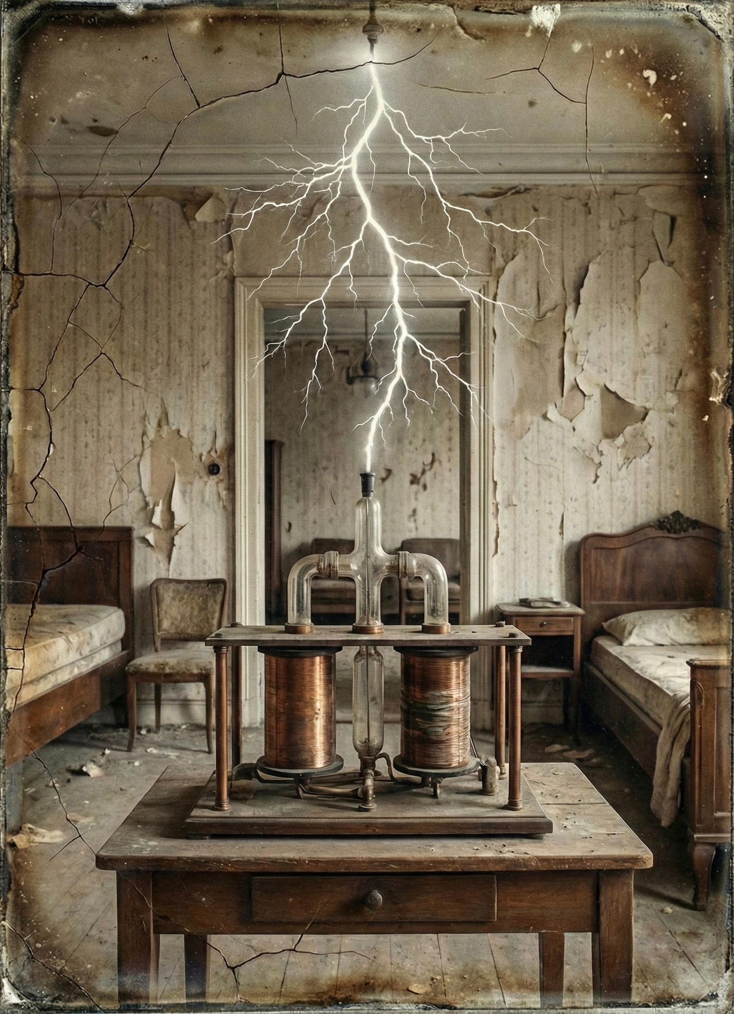 Already, thought moves elsewhere. If energy moves, it need not touch. If signals travel, they need not be guided by copper. These ideas do not interrupt the present; they overlay it, like another field superposed without disturbance. There is no need to announce them. They are already true.